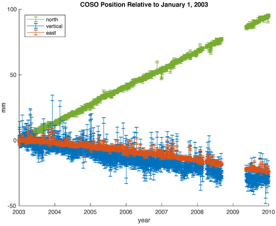 - Blewitt, G. Nevada Geodetic Laboratory Station ID: COSO. Available online: http://geodesy.unr.edu/NGLStationPages/stations/COSO.sta (accessed on 20 September 2018).