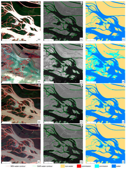 - Huang, W.; DeVries, B.; Huang, C.; Lang, M.; Jones, J.; Creed, I.; Carroll, M. Automated extraction of surface water extent from Sentinel-1 data. Remote Sens. 2018, 10, 797. [Google Scholar] [CrossRef]