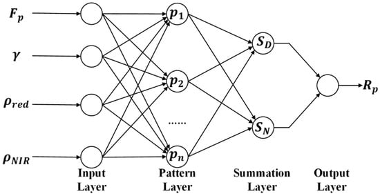 However, the joint PDF is generally unknown and must be estimated from the training dataset. To account for this problem, the GRNN designs four layers, namely the input, pattern, summation, and output layers (Figure 1). Detailed descriptions of the GRNN are given in [24]. Hereafter, we briefly introduce these four layers by incorporating the BPDF modeling of natural land surfaces.