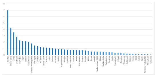 in 2018–from 0.23 w Świnoujście to 15.76 in Siedlce–Figure 7.