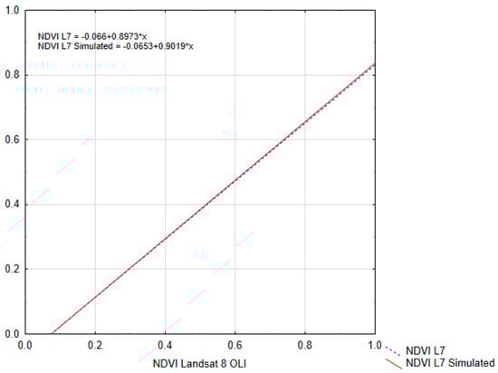 In other cases, even if the differences in terms of reflectance for the spectral bands [28] and other vegetation indices [29] was more significant, mainly for near infrared (NIR) and short wave infrared (SWIR), the regression analysis among the vegetation indices calculated with the two sensors provided high correlation values for other indices such as Land Surface Water Index (LSWI), NDVI and Normalized Burn Ratio (NBR) [28].