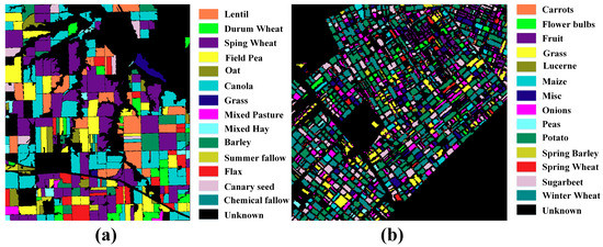 Ground truth maps of the experimental sites: (a) Indian Head and (b) Flevoland.