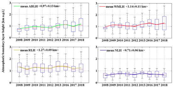 - Qu, Y.; Han, Y.; Wu, Y.; Gao, P.; Wang, T. Study of PBLH and Its Correlation with Particulate Matter from One-Year Observation over Nanjing, Southeast China. Remote Sens. 2017, 9, 668. [Google Scholar] [CrossRef]