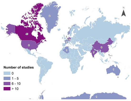 Number of compact polarimetry studies conducted within countries across the globe.