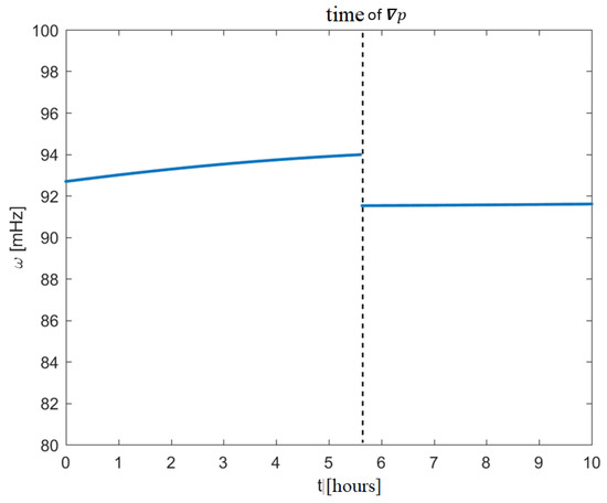 Figure 3b shows the relative energy for the vTEC on 5 August 2018. It can be easily seen that an anomalous vTEC component () at s switches on at (5:15 ± 0:02) UT and vanishes at (6:35 ± 0:02) UT. Another vTEC component (), at s, switches on at (10:42 ± 0:02) UT vanishing at (11:49± 0:02) UT—i.e., 1 min after the earthquake event.