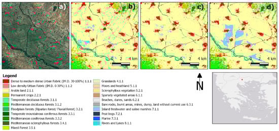Remote sensing, providing synoptic, spatially continuous, and consistent observations at multiple scales, can provide timely and accurate spatially explicit information on Earth’s physical surface cover (i.e., land cover) [10], which is essential for ES related research and practice [11]. Global open-access land cover products generated through Earth Observation (EO) data e.g., GlobeLand30 [12], S2GLC [13], Copernicus Global Land Cover [14], as well as continental/regional products provided through the Copernicus land monitoring service, such as the Corine Land Cover [15], provide information that can be potentially used as relevant to ES mapping and assessment processes at global, national, regional, and local scales. However, such operational, land-cover efforts might present limitations related to the use of diverse input data, accuracy variability over different areas and different classes, coarse update intervals and outdatedness in comparison to the real world [16], coarse thematic resolution and/or class diversity, and coarse minimum mapping units (MMU). The above shortcomings raise the need for timely and on-demand land-cover datasets that could replace or complement available, freely distributed products, providing timely information to the end-users and addressing some, if not all, of the above shortcomings [17].