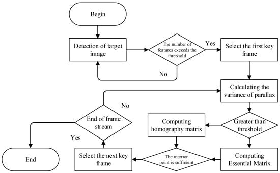 As shown in Figure 10, the process of the front-end algorithm of visual SLAM was as follows.