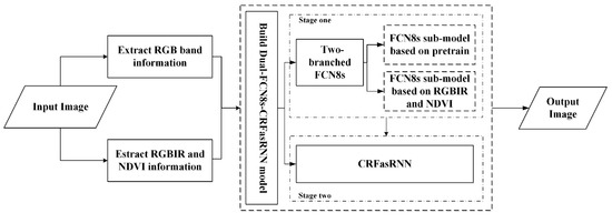 The general workflow of the Dual-FCN8s-CRFasRNN classification method.