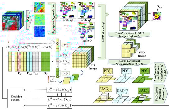 where indicates the element index in superpixel block, represents a scale compensation parameter. Moreover, the SPCR model classifies by analyzing which class leads to the maximum as follows: