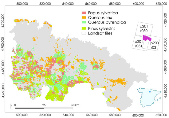 - A new Landsat forest species map was constructed by applying a new RF classification model based on the resample from step (1),