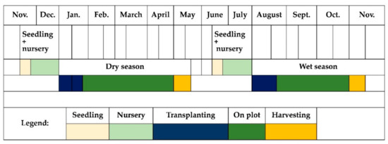 Double-cropping calendar for rice in the middle Niger valley (adapted from [20]).