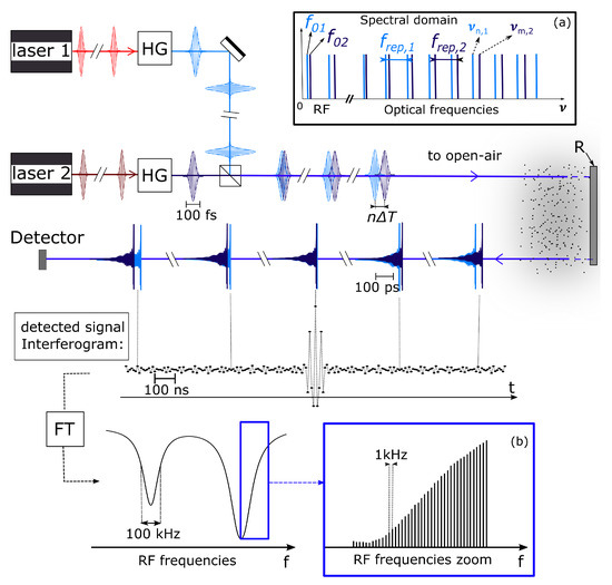 - Coddington, I.; Newbury, N.; Swann, W. Dual-comb spectroscopy. Optica 2016, 3, 414–426. [Google Scholar] [CrossRef]