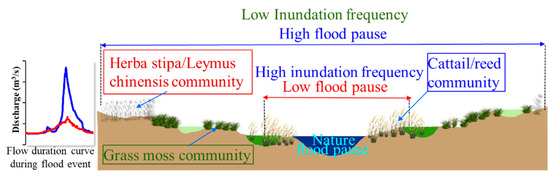 - De Jager, N.R.; Thomsen, M.; Yin, Y. Threshold effects of flood duration on thevegetation and soils of the Upper Mississippi River floodplain, USA. For. Ecol. Manag. 2012, 270, 135–146. [Google Scholar] [CrossRef]