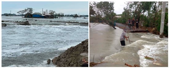 70]. Torrential rains along with tidal surges washed away villages, livestock, fisheries, and farms with an estimated 55,667 houses and 1490 km