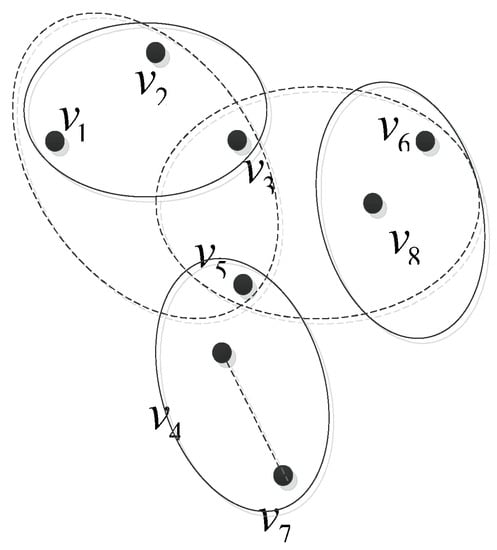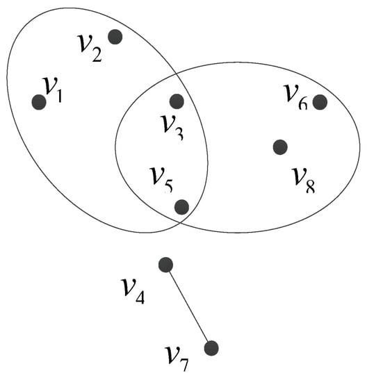 A hypergraph is composed of vertices and hyperedges. Suppose the vertex set is a finite set , and is a subset cluster of V(or hypergraph), the hypergraph can be expressed as . Figure 1 shows an example with 8 vertices and 3 hypergraphs. Here, two ellipses and one line segment are hyperedges used to divide vertices. These hyperedges constitute three hypergraphs, namely, , , and .
