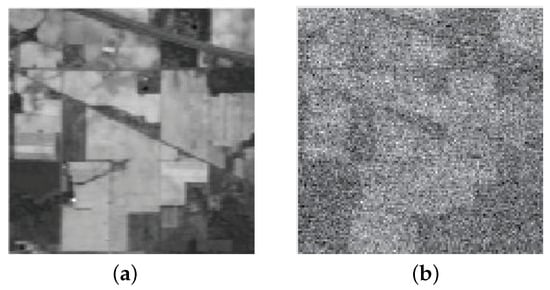 Grayscale image of Indian pines: (a) Grayscale image of the 120-th band; (b) grayscale image of the 200-th band.