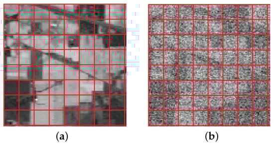 Part band images of Indian pines after grid division: (a) Grid image of the 120-th band; (b) grid image of the 200-th band.