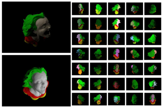 73], the best sets of the four types of variables are determined and the surface can be refined since the positions of vertices will be updated by their displacements. The lighting coefficients are the same for one image while the albedo and the vertex displacement of one surface point are the same in different images. For the specular components, they can be different for different surface points and images. In addition, the constraints on the rendering difference, the geometry smoothness, diffuse reflectance smoothness and specular reflectance smoothness make the objective function solvable and robust.