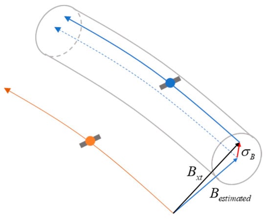 According to Figure 2, the baseline inclination error between two satellites can be expressed as []: