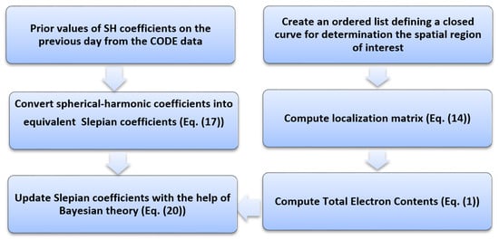 where , , is the prior covariance matrix and n is the total number of observations. An overview of VTEC estimation using the proposed approach is presented in Figure 1.