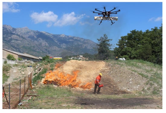 - Martínez-de Dios, J.R.; Merino, L.; Caballero, F.; Ollero, A. Automatic forest-fire measuring using ground stations and unmanned aerial systems. Sensors 2011, 11, 6328–6353. [Google Scholar] [CrossRef]