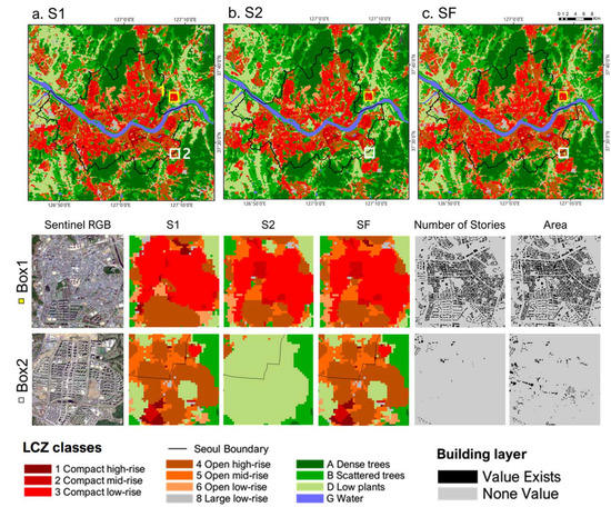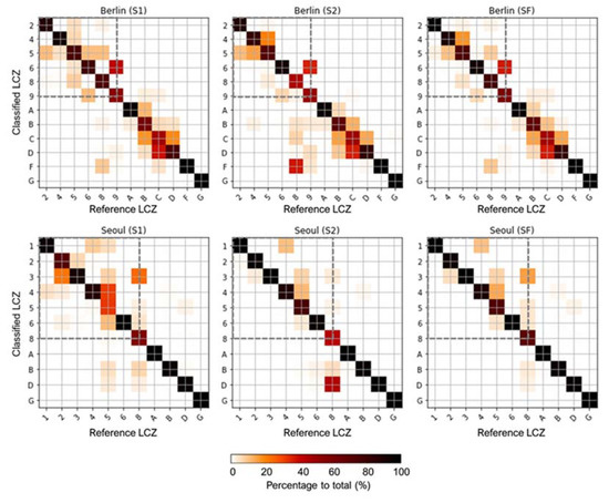 - Condition 2: If S1 is classified as urban-type LCZ (LCZ1-10), but S2 is classified as natural-type (LCZA-G).