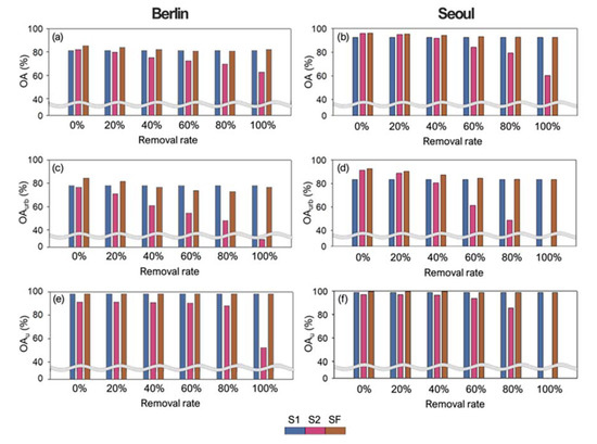 | OA % | OAurb% | OAu% | OA% | OAurb% | OAu% | |