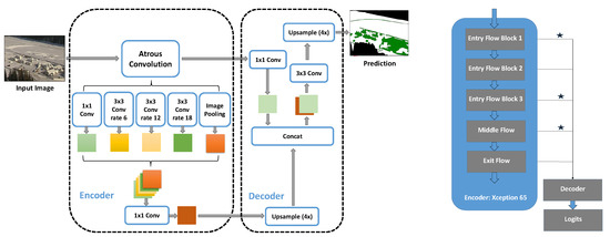Deeplab v3+ (left) and Deep-U-Lab (right) architectures. The “⋆” symbol indicates the additional skip connections for Deep-U-Lab.