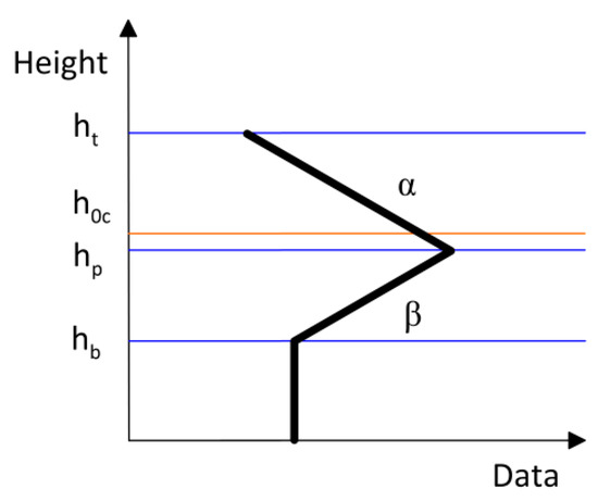 An ideal AVPD model for ZH, ZDR, and KDP is established based on the same feature of frequency distributions, and it is shown in Figure 5. It can represent most AVPDs of ZH, ZDR, and KDP. The main height parameters include BB top height (ht), BB bottom height (hb), and BB peak height (hp).