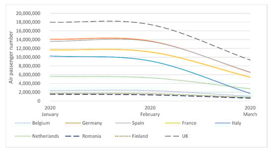 Economic and air traffic data from the European Commission (July 2020) were used in order to explain the effects of the COVID-19 lockdown measures on the European countries’ economy. Industrial Production Index (in %) indicates the changes in the production volume based on a reference year (2015).