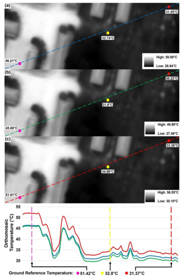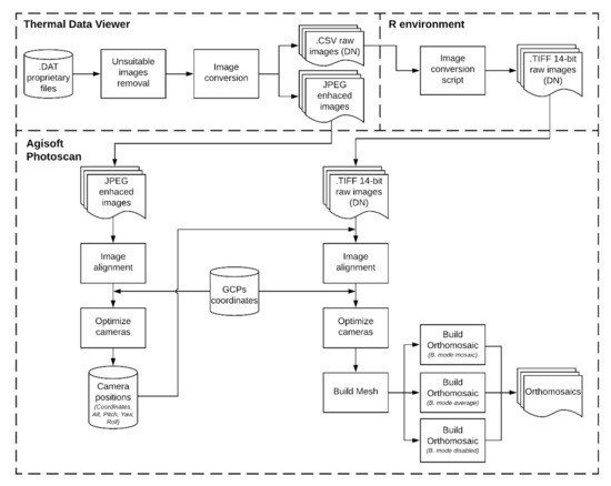- Pech, K. Generation of Multitemporal Thermal Orthophotos from UAV Data. Int. Arch. Photogramm. Remote Sens. Spat. Inf. Sci. 2013, 1, 305–310. Available online: https://core.ac.uk/download/pdf/206789497.pdf (accessed on 7 July 2020). [CrossRef]