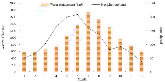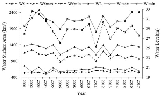 Seasonal and interannual changes in the water area of Dongting Lake from 2001–2017.