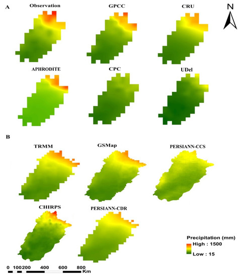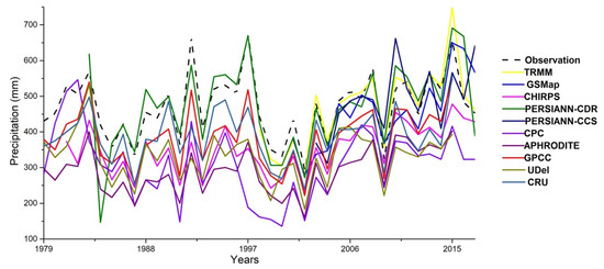 | TRMM | 0.25° | Monthly | Global land | 2003–2017 | [53] |