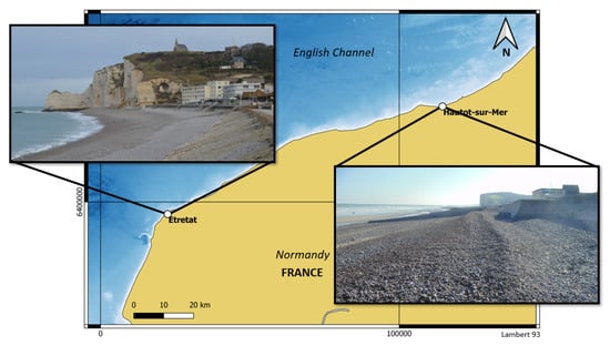 During this work, two study sites were analyzed: Etretat and Hautot-sur-Mer (Figure 5). Both are touristic beaches characterized by the presence of a pebble ridge resting at the foot of a seawall and crossed by groins.