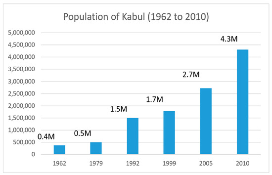 - Rasmussen, S.E. Kabul—the Fifth Fastest Growing City in the World—Is Bursting at the Seams|Cities|The Guardian. 2014. Available online: https://www.theguardian.com/cities/2014/dec/11/kabul-afghanistan-fifth-fastest-growing-city-world-rapid-urbanisation (accessed on 7 June 2018).