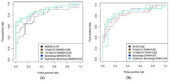 For the MARS model, the sensitivity and specificity values of the resampling methods range from 0.65 to 0.77 and 0.74 to 0.86, respectively. Similarly, for the SVM model, the sensitivity/specificity values produced 0.65 to 0.84 and 0.74 to 0.83 while the BRT model yielded 0.74 to 0.87 and 0.80 to 0.88, respectively. Basically, in the three models, the 5- and 10-fold CV, bootstrap and optimism bootstrap resampling methods improved the prediction accuracy. With AUC, sensitivity and specificity values close to 1, it is evidenced, statistically, that the models reliably predict forest fire in the study area.