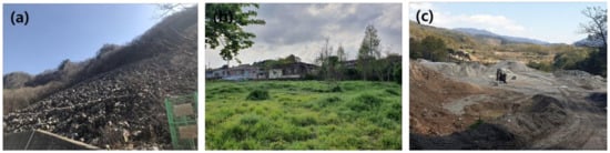 As per the field surveys conducted over 2 years, 288 areas were categorized as actually damaged areas (Table 5). Of the 399 damaged areas derived through remote sensing, approximately 72% of the areas were found to be actual damaged areas; it is judged that the methodology used in this study detected the damaged areas with good accuracy. As per the field surveys, approximately 90% of the damaged areas were found to have an area of 50,000 m2 or less—almost the same as the ratio obtained through remote sensing. Contrastingly, in the case of distribution by region, in the analysis using remote sensing, the number of damaged areas in Gyeonggi-do and Gangwon-do was similar, but 35 areas of Gangwon-do were excluded from the field survey. In Gangwon-do, the forest area accounted for more than 80% of land cover; Rocky Mountains, quarries, and talus areas were widely distributed. In this study, natural environmental damage was defined as a change into a barren area; the damaged areas detected through remote sensing were often classified into the above three topographies. Rocky mountains and quarries were excluded as natural ecosystems that require management. The term talus has been used to define the landform of cliffs containing conical-pile form rock fragments and was excluded as a natural phenomenon [] (Figure 6). Most of the other excluded areas are currently under development or have already been completed and post-processed. This was considered to be an error due to differences between the land-cover map construction time and the current land status.