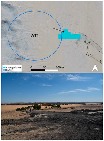 Smaller-scale, localised, but equally damaging changes away from the ‘New Aswan’ project were also identified by the script and included construction and quarrying. At the lithic scatter site of WK32 (Figure 9), the algorithm detected recent digging of pits, spoil heaps, and the construction of a small agricultural building.