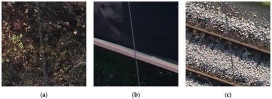 First, it is important to define image quality requirements. In this case, the most significant parameter is resolution as defined by the GSD. The maximal GSD to ensure that the wires are detected must be smaller than their diameters. However, to increase the efficiency of detection, the GSD should be half the diameter. Another important aspect is the camera’s exposure settings, which must ensure that the wires can be distinguished from the background (Table 1). Owing to the small size of the wires, the ISO setting should be as small as possible. To avoid blurred images, the shutter speed should be adjusted to UAV flight speed, and should not be higher than the ratio of the GSD to the speed of the UAV. If the camera settings allow for the disabling of the low-pass filter, this should be done. Moreover, for the high accuracy of the end product, the use of a global shutter camera would be advised.