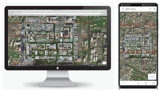 The live map can be visualized in PC and mobile phone web browsers. To share the dynamic orthophoto through network efficiently, a restful API, and a corresponding rendering strategy is designed. Only tiles, which are visible and updated, are transferred, and a network with over 100 KB/s bandwidth is sufficient to render a low-latency high-resolution dynamic layer. This finding indicates that the real-time mapping service can be placed everywhere and shared through the Internet.