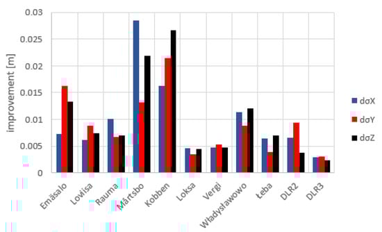 - Tide Gauge Sites: The ECRs at the stations Emäsalo, Rauma, Loksa, and Forsmark are tied to local tide gauges. The resulting ECR positions are used to convert tide gauge heights to ellipsoidal heights and as such this experiment represents the standard case for the future assuming the performance of the absolute ECR positions is at centimeter level. The collocation sites can also be used for this experiment. One just needs to disregard the local tie to the GNSS station.
