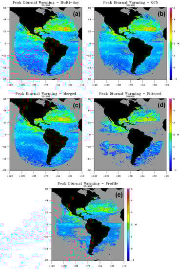23], at least for more typical DW amplitudes, additional evaluation seems warranted for the most extreme events. As will be shown here, direct examination of derived diurnal warming maps suggests the existence of a broader distribution of large-amplitude events that could be potentially misinterpreted if not studied in more detail.