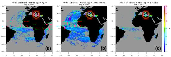 24]). Estimation of a DW amplitude requires computation of a day–night SST difference. The most common approaches have utilized initial determination of the foundation temperature (e.g., [