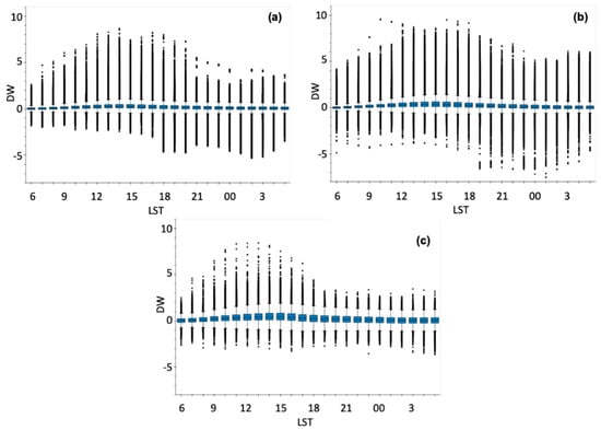 Figure 8, we extracted the probabilities for exceeding specific values and computed the 95th and 99th percentiles of retrieved DW