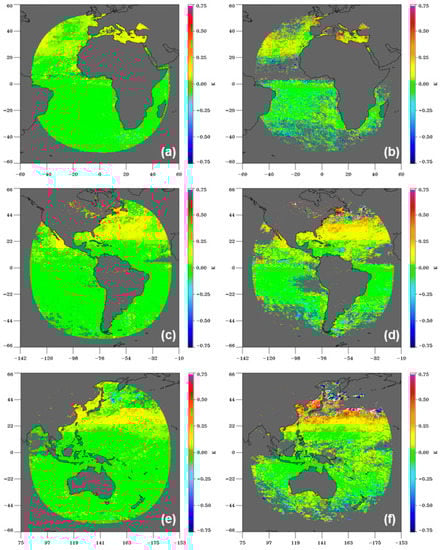 23] have shown a tendency for some operational systems to incorrectly flag pixels affected by DW as of lower quality. Here, we considered all values with quality indices of 3 or higher for the daytime SST