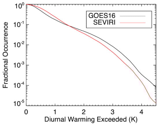 Figure 11, demonstrate that while GOES-16 yields larger and more frequent extreme diurnal warming, for smaller DW