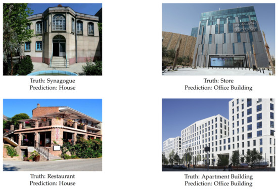 On the other hand, there are some buildings that have posed problems to both models. Examples of these images are provided in Figure 8. In fact, both models predicted the same fine label to 83% of these images. These samples are arguably challenging to classify even from a human perspective.