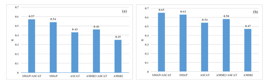 Further studies are recommended to calculate the relative weights of parent SM products, based on maximized signal-to-noise ratios, at different seasonal scales, and it maybe gives better results due to seasonal variations. Also, studies need to be performed on the possibilities of merging SM retrievals from more than two satellites. Finally, TCM has been applied successfully in different fields include oceanography, hydrometeorology, and ecology [79,80,81,82]. Therefore, our proposed demonstrated scheme for SM has flexibility and can be applied to other biogeophysical variables.