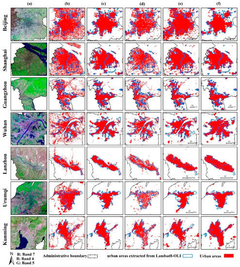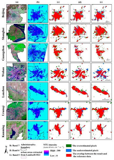 - Xie, Y.; Weng, Q. Updating urban extents with nighttime light imagery by using an object-based thresholding method. Remote Sens. Environ. 2016, 187, 1–13. [Google Scholar] [CrossRef]