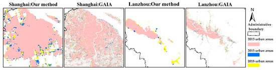 - Liu, X.; Hu, G.; Chen, Y.; Li, X.; Xu, X.; Li, S.; Pei, F.; Wang, S. High-spatiotemporal multi-temporal mapping of global urban land using Landsat images based on the Google Earth Engine Platform. Remote Sens. Environ. 2018, 209, 227–239. [Google Scholar] [CrossRef]